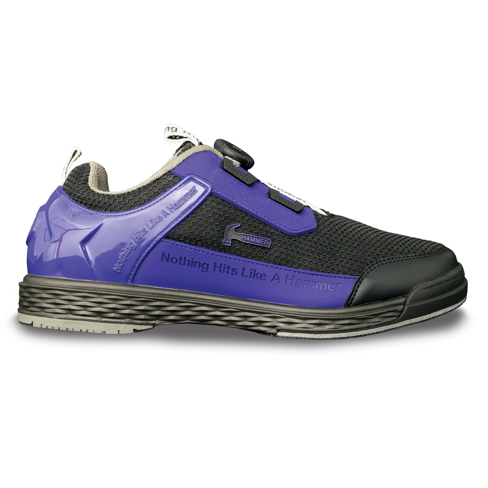 Hammer Power Diesel Men's Right Handed Bowling Shoes Features: Formed non-marking PU outsole with TPU toe Comfortable EVA insole Stylish athletic-looking mesh upper Designed for comfort, requiring minimal break-in Available in Right Hand Dial lacing system Included in the box: #6 Slide sole #8 S...